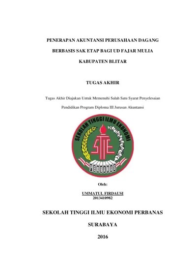 Adapun judul tugas akhir yang penulis kemukakan dalam tugas akhir ini adalah "penerapan sistem akuntansi persediaan pada pt. No, judul tugas akhir, nama mahasiswa, stambuk, tahun. "pengolahan data akuntansi menggunakan zahir. Rahmat dan karunianya akhirnya tugas akhir yang berjudul "sistem. Namun kadang kala, masih banyak mahasiswa yag merasa kesulitan menemuka judul skripsi yag hendak diajukan sebagai tugas akhir.
